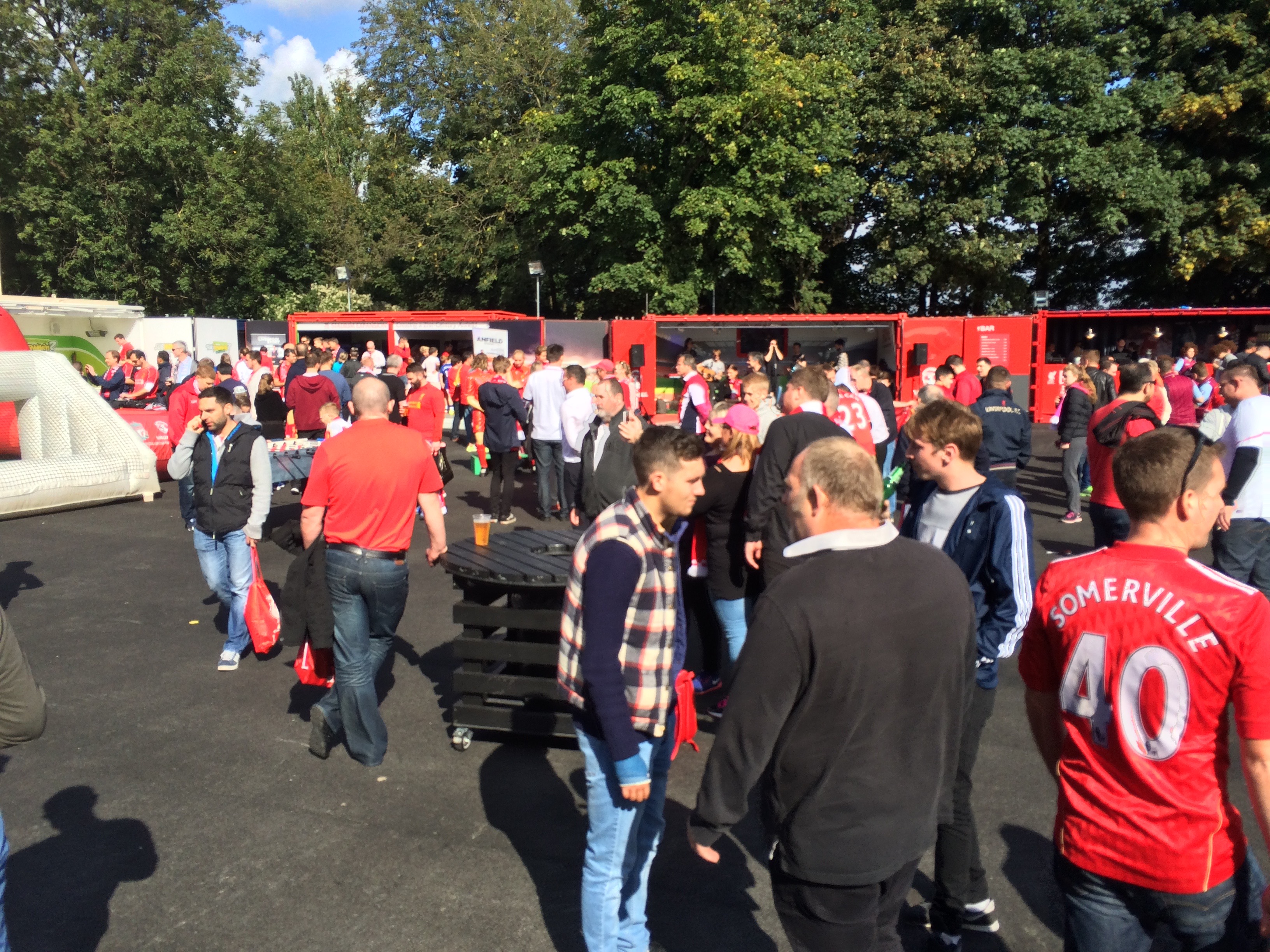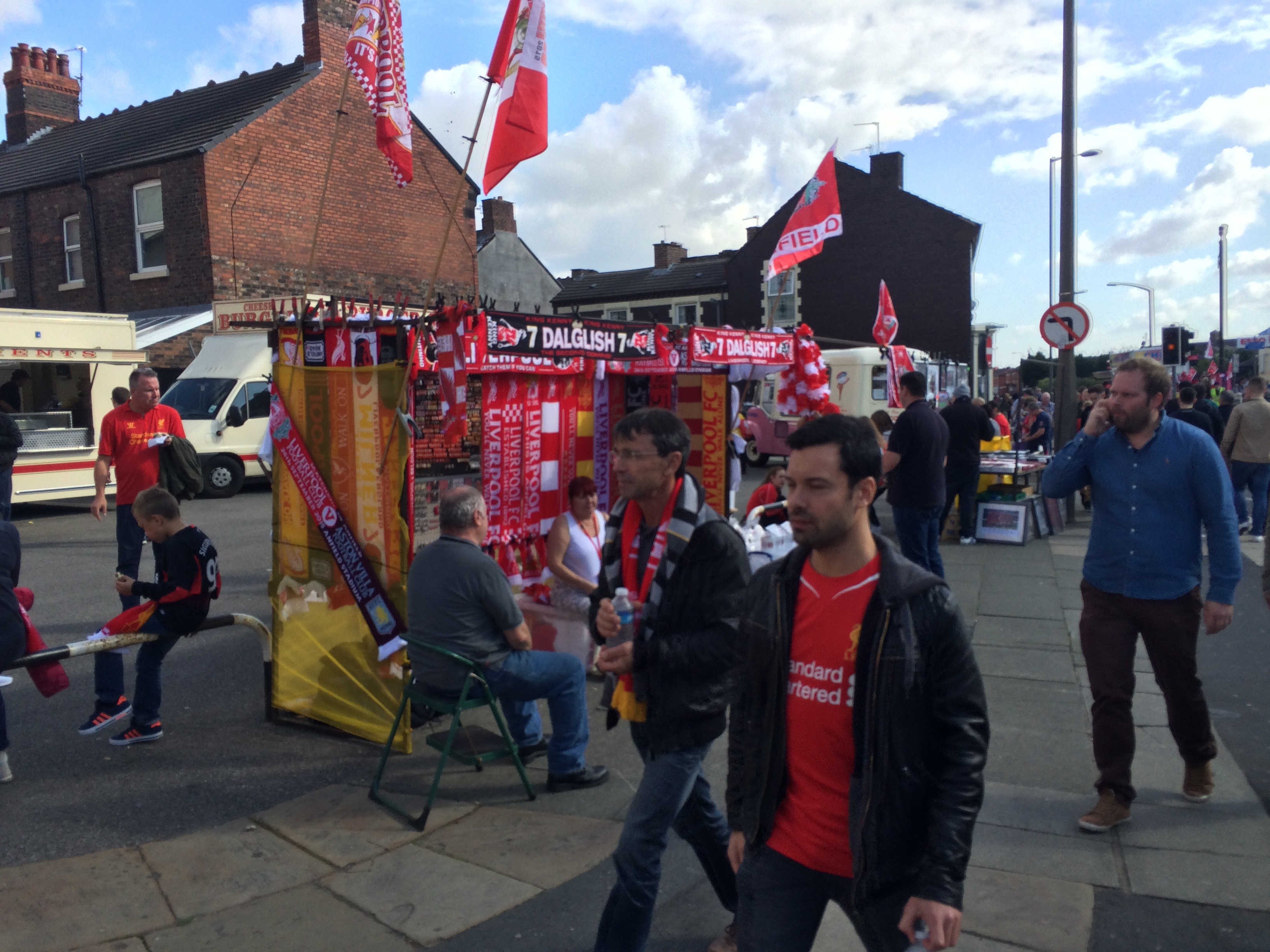 เอาและ ตั๋วที่ได้เป็นฝั่ง Anfield Road (ฝั่งตรงข้าม) ต้องเดินอ้อมสนามไป กะว่าจะเข้าสนามเร็วหน่อย ประตูเปิด บ่ายโมงครึ่ง ก็กะว่าจะเข้าไปเลย