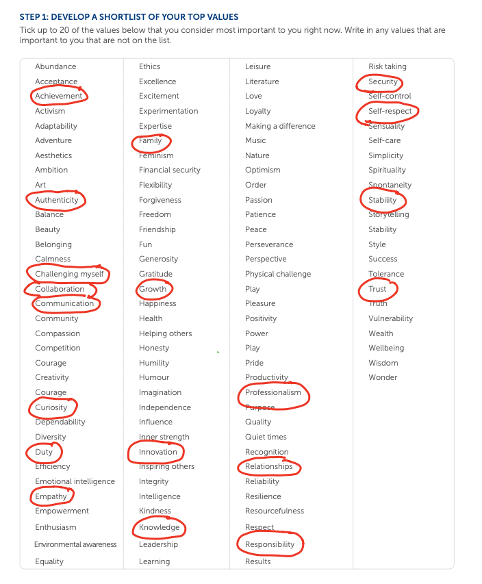 Assignment ของ Session ที่สอง เป็นการสำรวจคุณค่าที่เรายึดถือจากคำที่มีในกระดาษ
