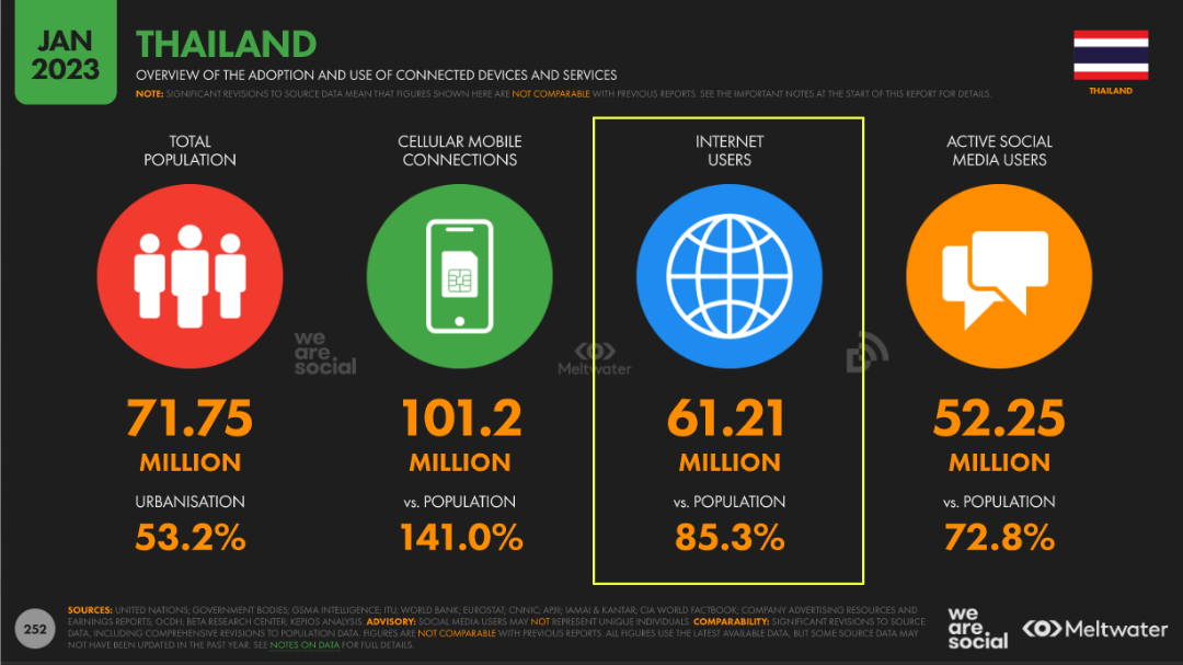 อ้างอิงจากข้อมูลของ Social Media Report ปี 2023 จาก We Are Social ระบุว่า คนไทยเป็น Internet User มากถึง 85.3% ของประชากร โดยถึงแม้ Social Media ที่คนไทยใช้งานเยอะที่สุดจะเป็น Facebook และ LINE แต่ TikTok เองก็เติมโตอย่างต่อเนื่อง มาเป็นที่ 4