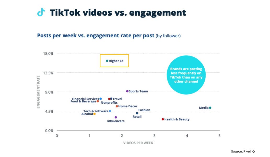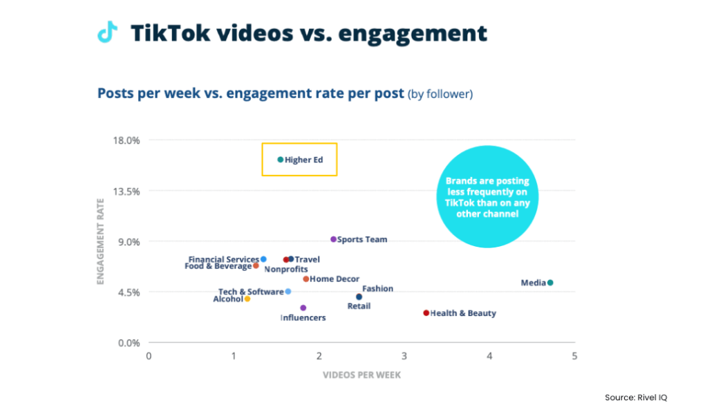 จะเห็นว่ากลุ่ม Higher Education หรือกลุ่มการศึกษาระดับสูง (วิทยาลัยและมหาลัยขึ้นไปในสหรัฐอเมริกา) ได้รับ Engagement ค่อนข้างสูง อาจเป็นเพราะกลุ่ม Audience เป็นกลุ่ม Active User ที่มากที่สุดใน TikTok ก็เป็นได้