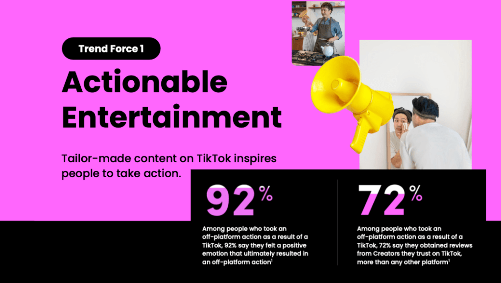 TikTok ทำให้ผู้คนค้นพบคอนเทนต์แนวใหม่ ๆ ที่ผู้ใช้อาจไม่รู้ตัวมาก่อนได้มากกว่าแพลตฟอร์มโซเชียลมีเดียอื่น ๆ ถึง 1.8 เท่า